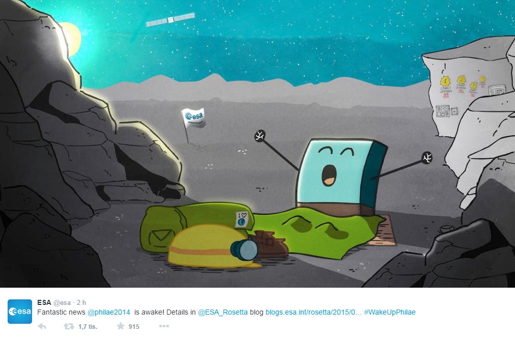 PARÍŽ / Po takmer sedemmesačnej odmlke sa opäť ozval pristávací robotický modul Philae, ktorý bol súčasťou vesmírnej sondy Rosetta a vlani v novembri pristál na kométe 67P/Čuriumov-Gerasimenko. Informovala o tom na svojom blogu Európska vesmírna agentúra (ESA).