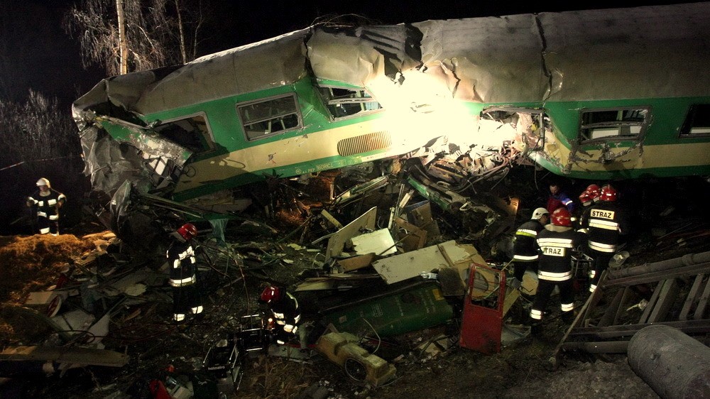 Zrejme najväčšia katastrofa na poľskej železnici za posledných 20 rokov sa udiala v sobotu na juhu krajiny. Čelne a v plnej rýchlosti sa tu totiž zrazili dva osobné vlaky. Nehoda si vyžiadala minimálne 15 obetí a viac než 60 ľudí je vážne zranených! Na mieste je tiež reportér večerného spravodajstva Peter Dzurilla.