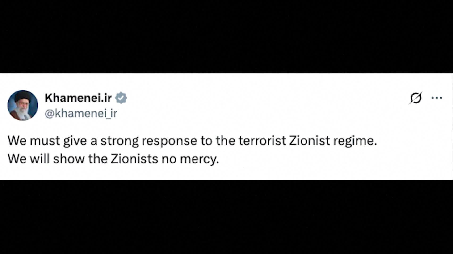„Teroristickému sionistickému režimu musíme dať ráznu odpoveď. Sionistom nepreukážeme žiadne zľutovanie,“ napísal Chameneí na platforme X.
