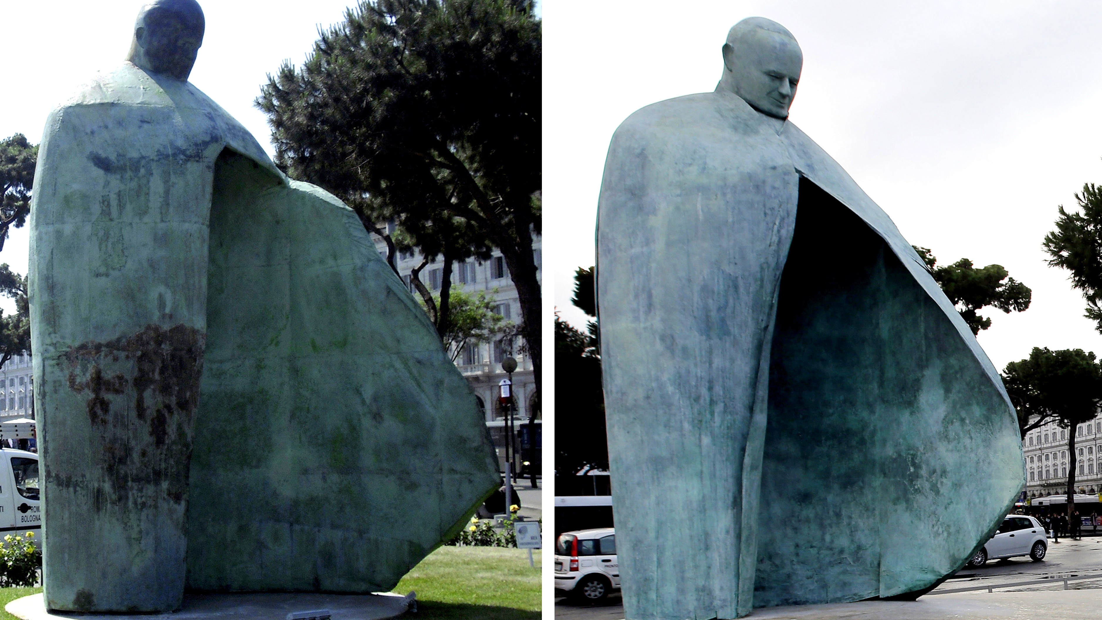 FOTOGALÉRIA. V Ríme opäť odhalili spornú sochu Jána Pavla II.