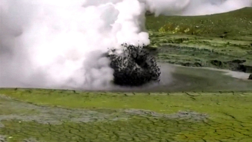 Z horúceho vulkanického jazera syčí para a strieka gejzír plný čierneho popola. Sopka "Whaakari", čo v preklade znamená Biely ostrov, sa nachádza na rovnomennom ostrove asi 50 km od Severného ostrova Nového Zélandu.