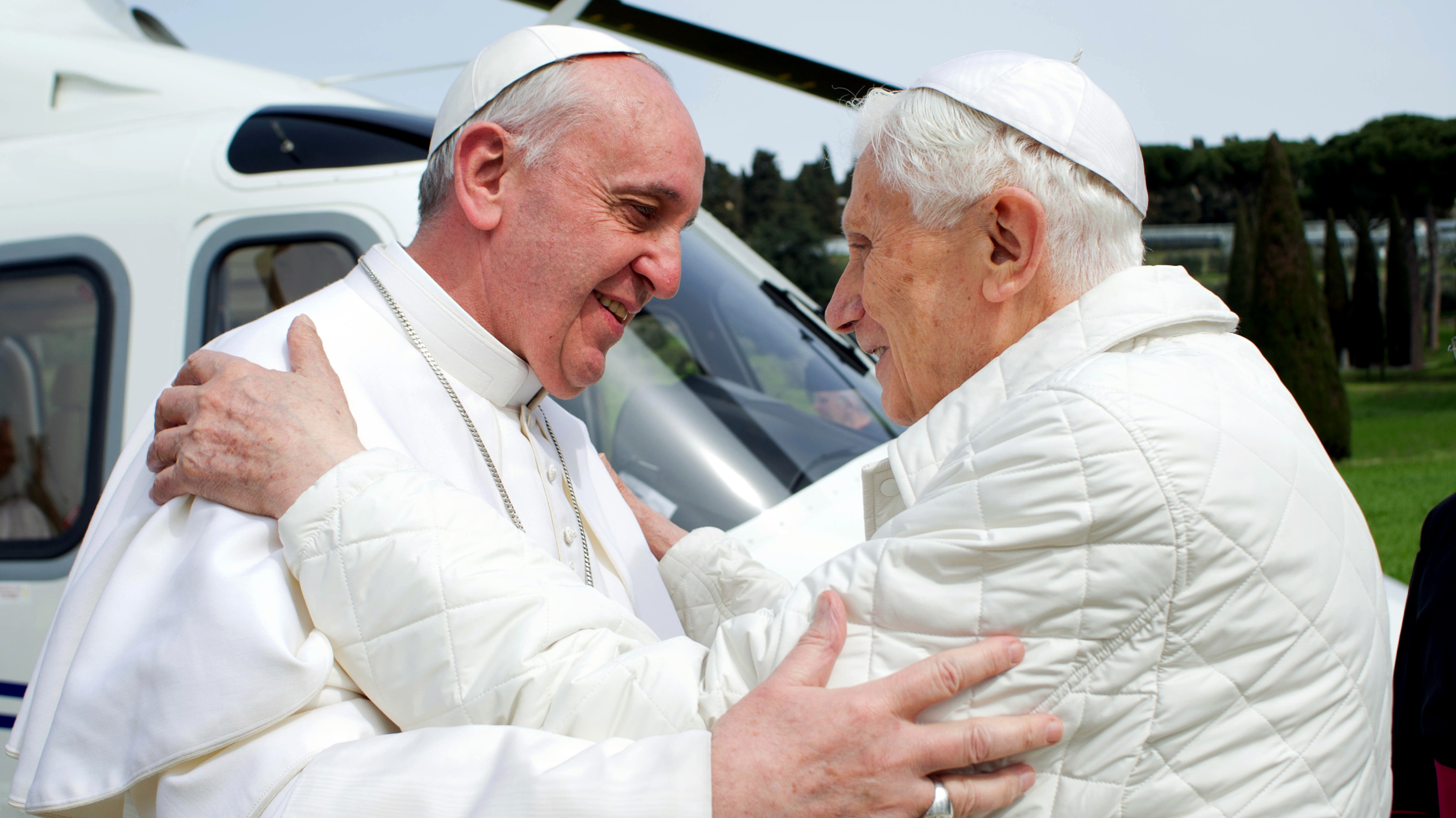 Pápež František sa v sobotu stretol so svojím predchodcom v úrade Benediktom XVI. Za dnes už len emeritnou hlavou katolíckej cirkvi priletel na vrtuľníku priamo do dedinky Castel Gandolfo neďaleko Ríma. Obama muži mali na schôdzke biele pápežské rúcho a oslovovali sa navzájom rovnakým titulom "Vaša svätosť".