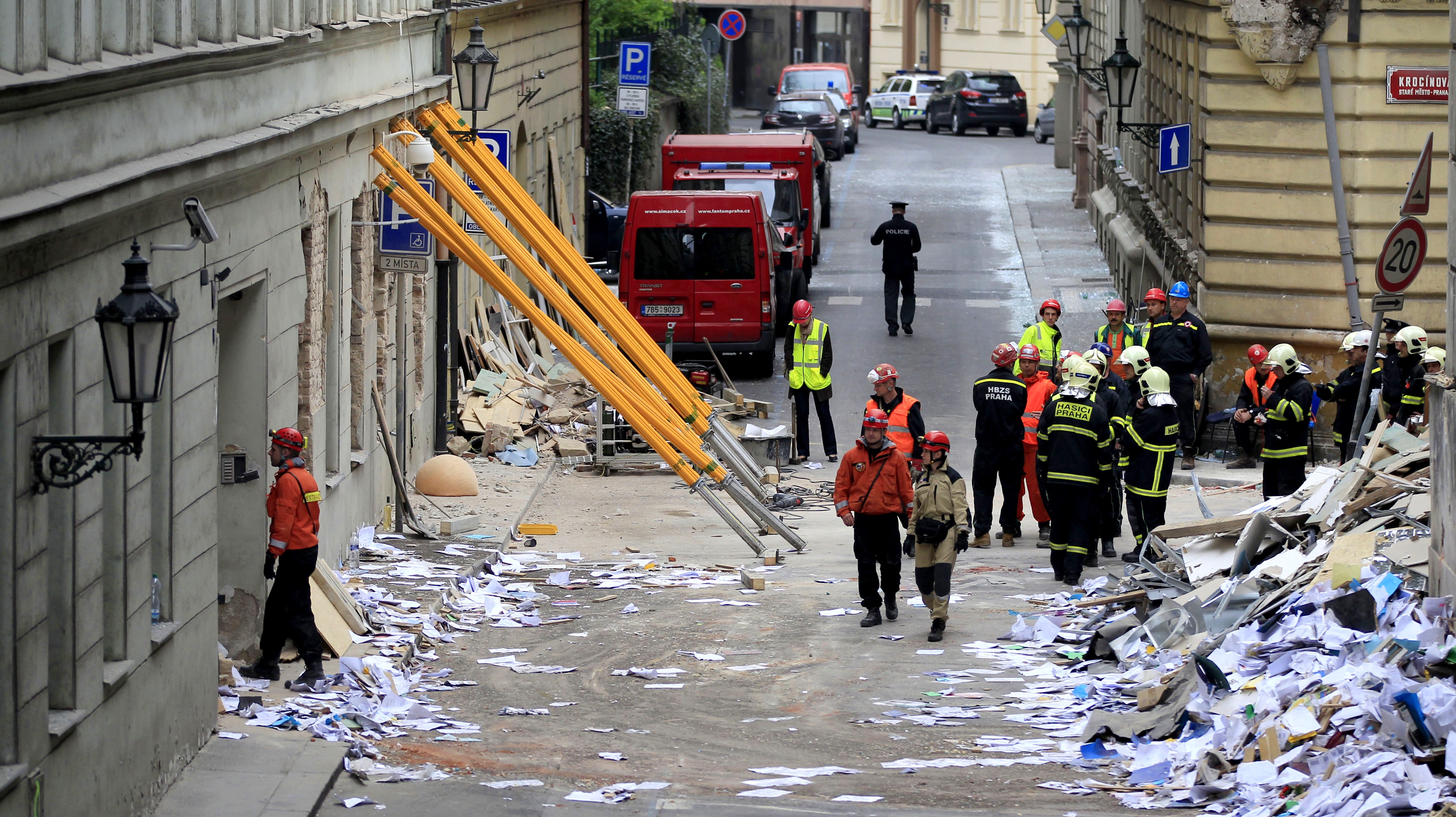 PRAHA / Okolie domu v pražskej Divadelnej ulici, kde v pondelok vybuchol plyn, je stále uzatvorené. Električková doprava je v miestach obmedzená, pre autá je táto oblasť absolútne neprejazdná. Hasiči stále vypratávajú sutiny v poškodenom dome.