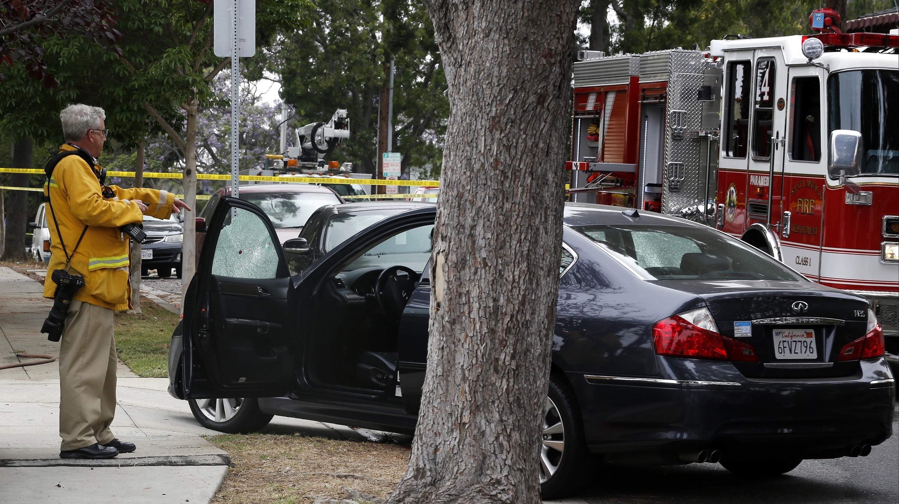 Na úteku si všimol auto, ktoré malo v karosérii diery po strelách, rozbité sklá a vo vnútri detskú sedačku. Policajný seržant Rudy Flores citoval viacerých svedkov, ktorí uviedli, že strieľať začal muž stojaci na rohu ulice v blízkosti školy, ktorý mieril na prechádzajúce autá i na autobus. zranil pritom spomínané ženy.