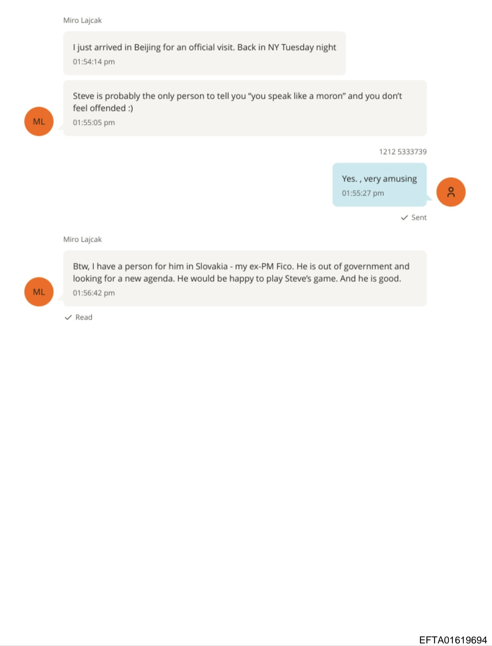 Lajčák na Epsteinovu otázku reagoval opatrne. „Je považovaný za priateľa anti-EÚ strán, takže ‚mainstreamoví‘ politici sa s ním nebudú chcieť ukazovať. Ale nechaj ma porozmýšľať.“ O približne dva týždne neskôr, 1. júla 2018, Lajčák Epsteinovi napísal správu, v ktorej odporučil Roberta Fica – v tom čase už nie premiéra, ale opozičného lídra po politickom otrase spôsobenom vraždou Jána Kuciaka a Martiny Kušnírovej.