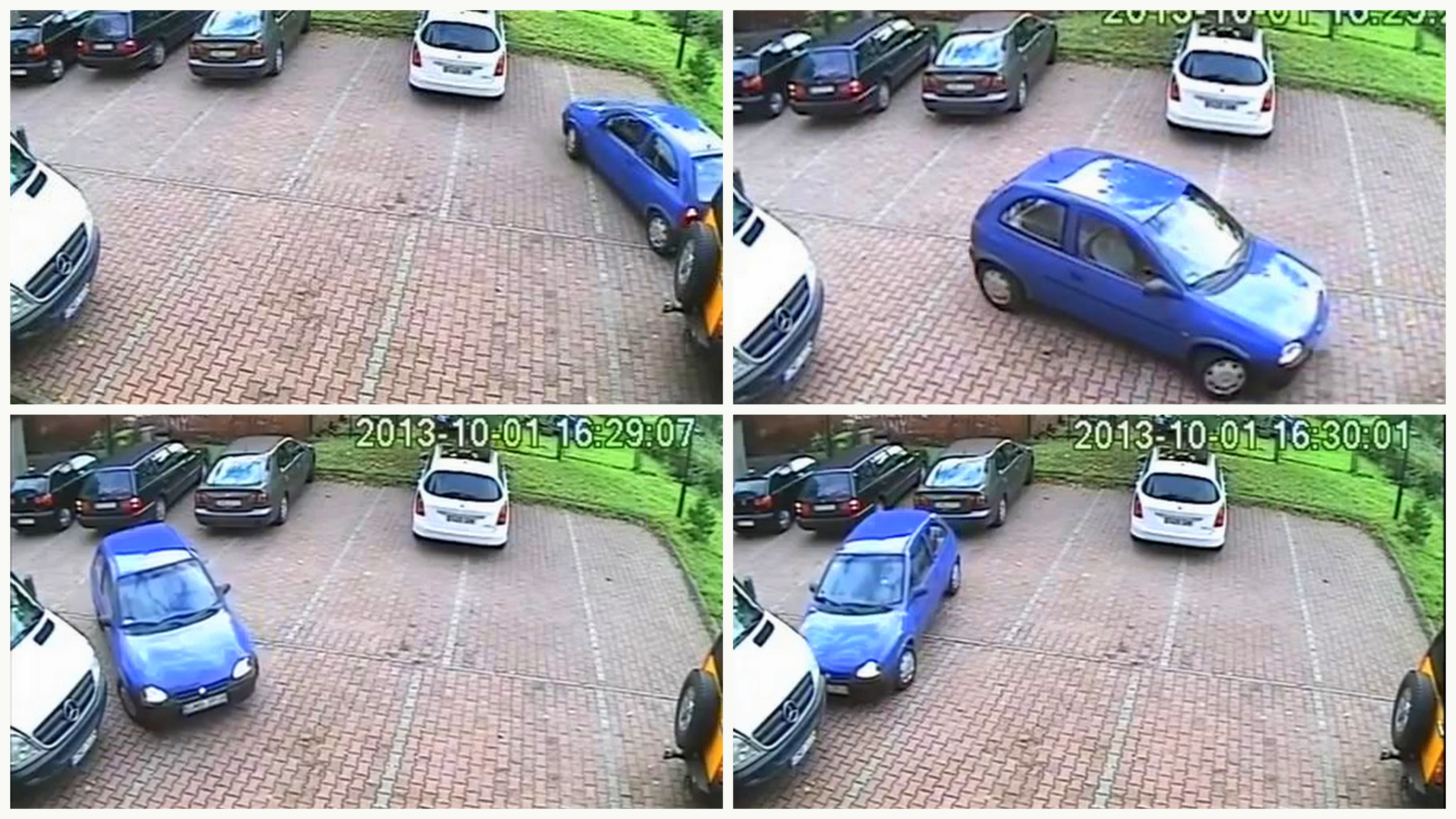 Keď sa jej nepodarilo vycúvať, vošla elegantným oblúkom priamo medzi ďalšie autá. Potom opäť vyšla, po chvíli sa ale vrátila späť a na minimálnom priestore sa zložitým manévrovaním konečne vyslobodila.