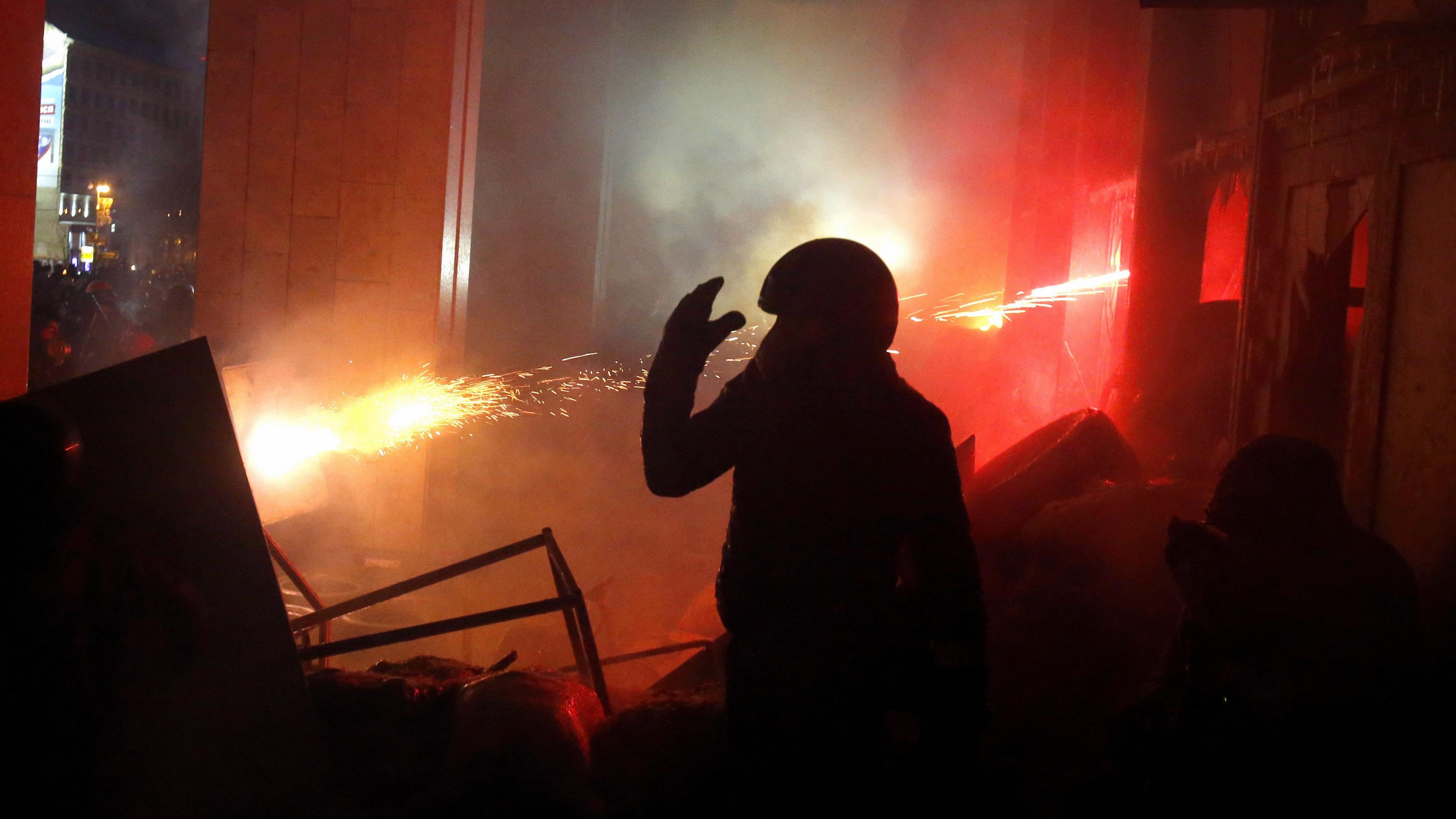 Správy o násilnostiach prichádzali z Kyjeva od nedeľného rána. V noci na pondelok sa v metropole odohrala desiatka stretov medzi demonštrantmi a policajtmi.