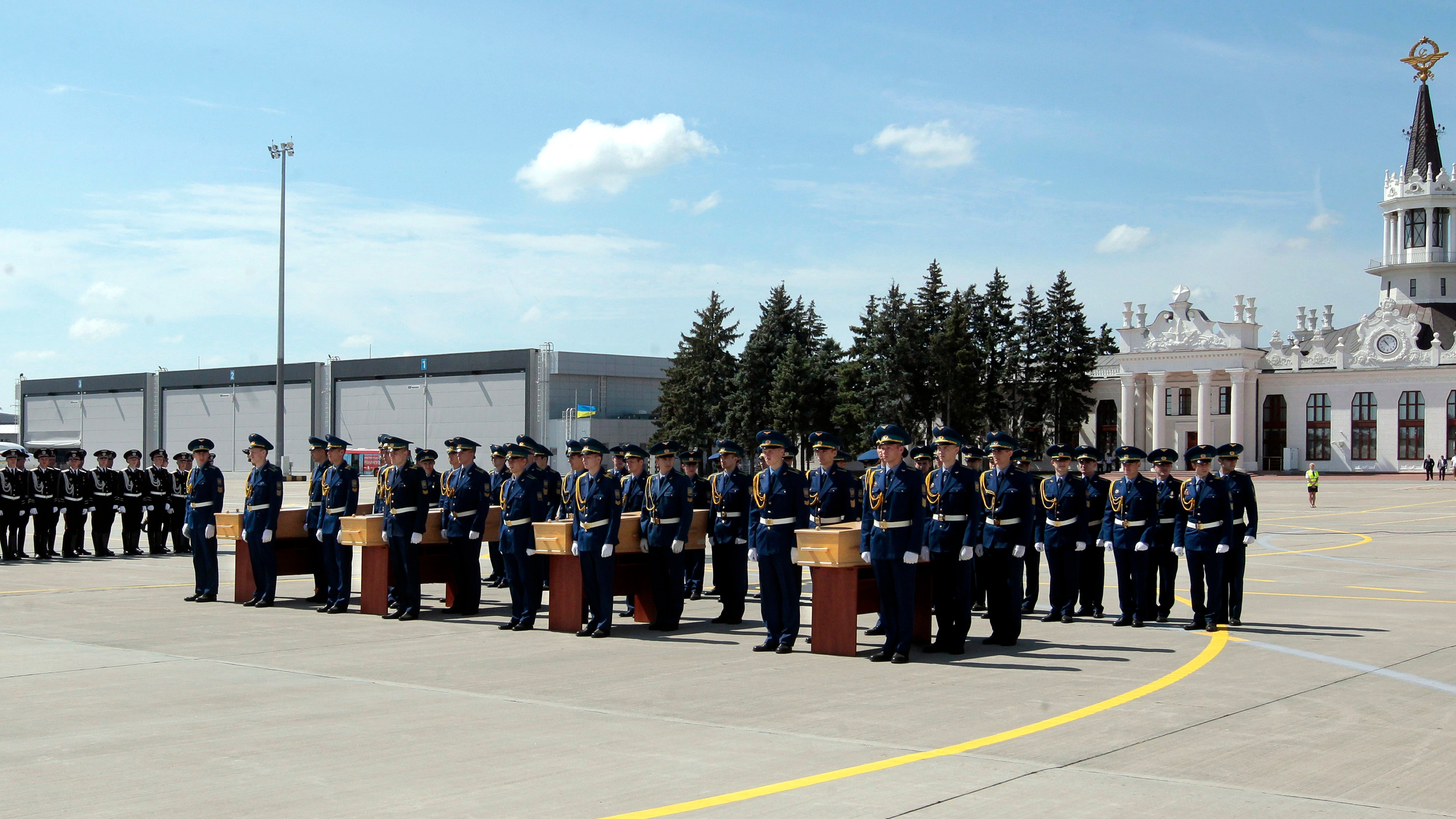 V stredu ráno prepravili 50 rakiev na charkovské letisko, kde po krátkom pietnom obrade začali telá nakladať do holandského transportného lietadla Herkules C-130 a austrálskeho Boeingu C17.
