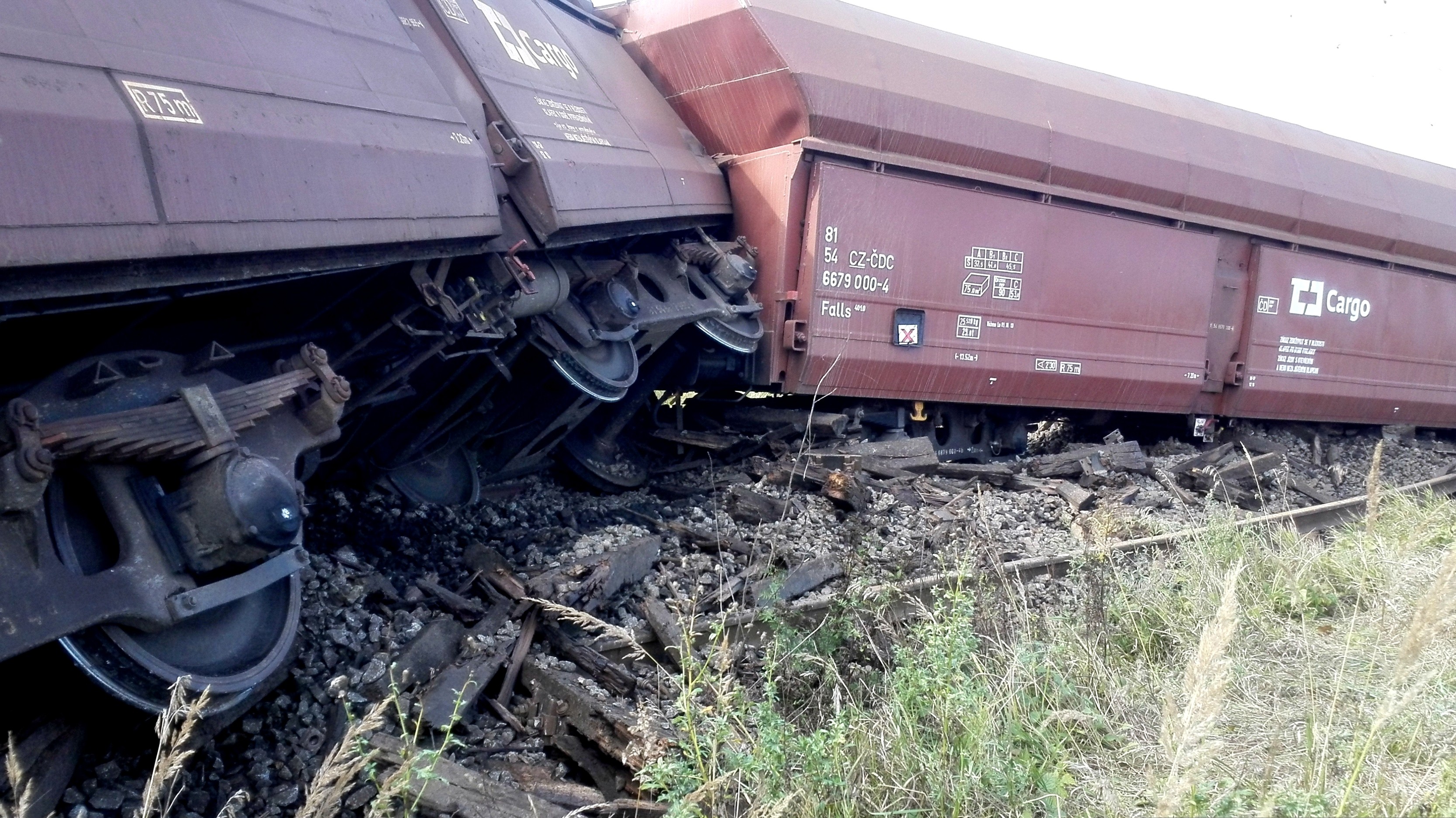 Hovorkyňa krajskej polície potvrdila, že sa približne kilometer pred Převýšovom z doposiaľ nezistených príčin vykoľajilo pätnásť vagónov z celkového počtu 32. Dva z nich sa odtrhli a ležia na boku. Všetko uhlie sa z nich vysypalo.