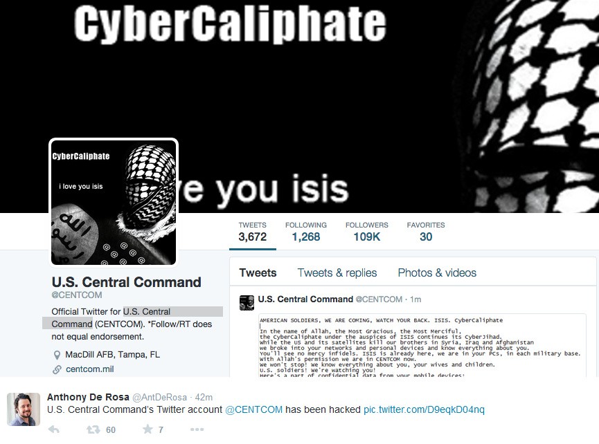 Informácie americkej televízie NBC potvrdil nemenový dôstojník Pentagonu. "Zjavne bol účet napadnutý," uviedol armádny činiteľ. Na Twitteri sa objavil odkaz "Americkí vojaci, dajte si pozor, prichádzame," podpísaný skratkou Islamského štátu.