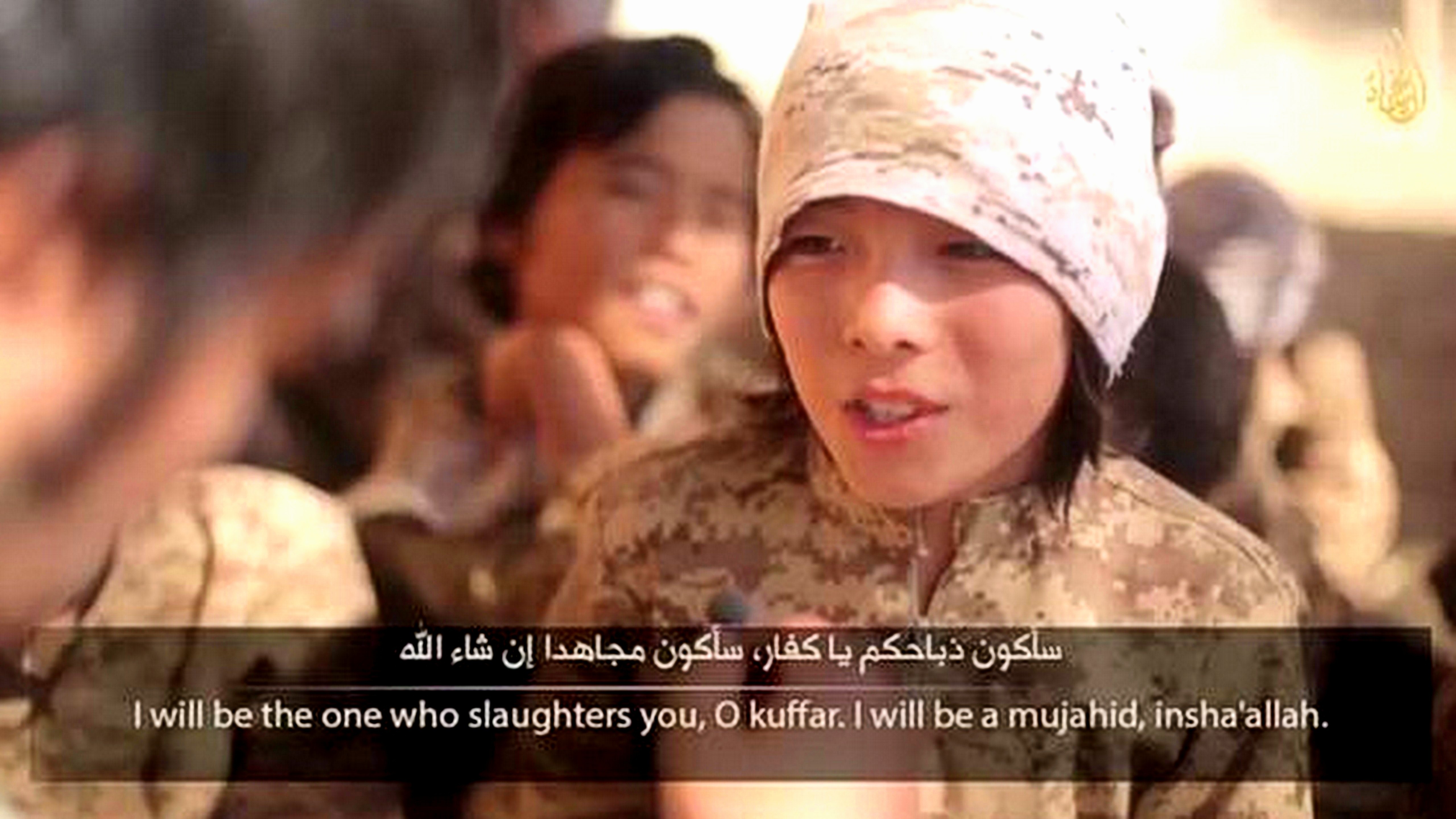 Ich výpovede otitulkované arabským i anglickým textom. Na konci videa asi desať až dvanásťročný chlapec oboch klačiacich mužov pištolou zastrelí.