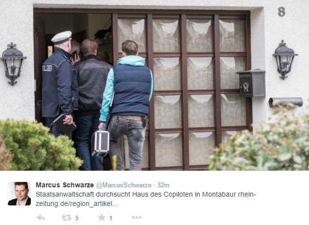 Andreas žil a vyrastal v jednom z rodinných domov. Teraz ho pre obavy z možného násilia voči rodine stráži polícia. Pilotovi príbuzní prišli domov, vyložili veci a s policajtmi zmizli v dome.