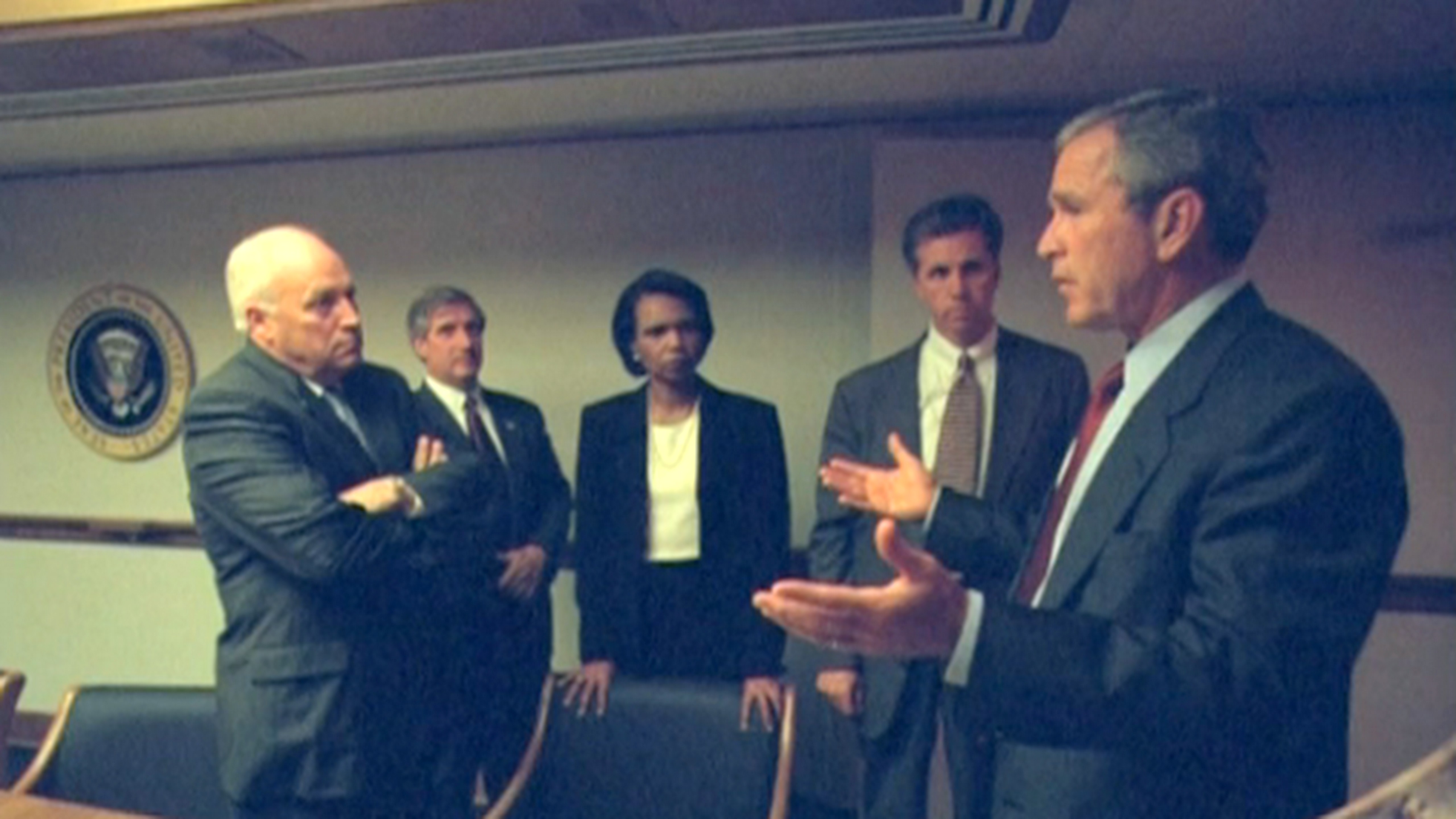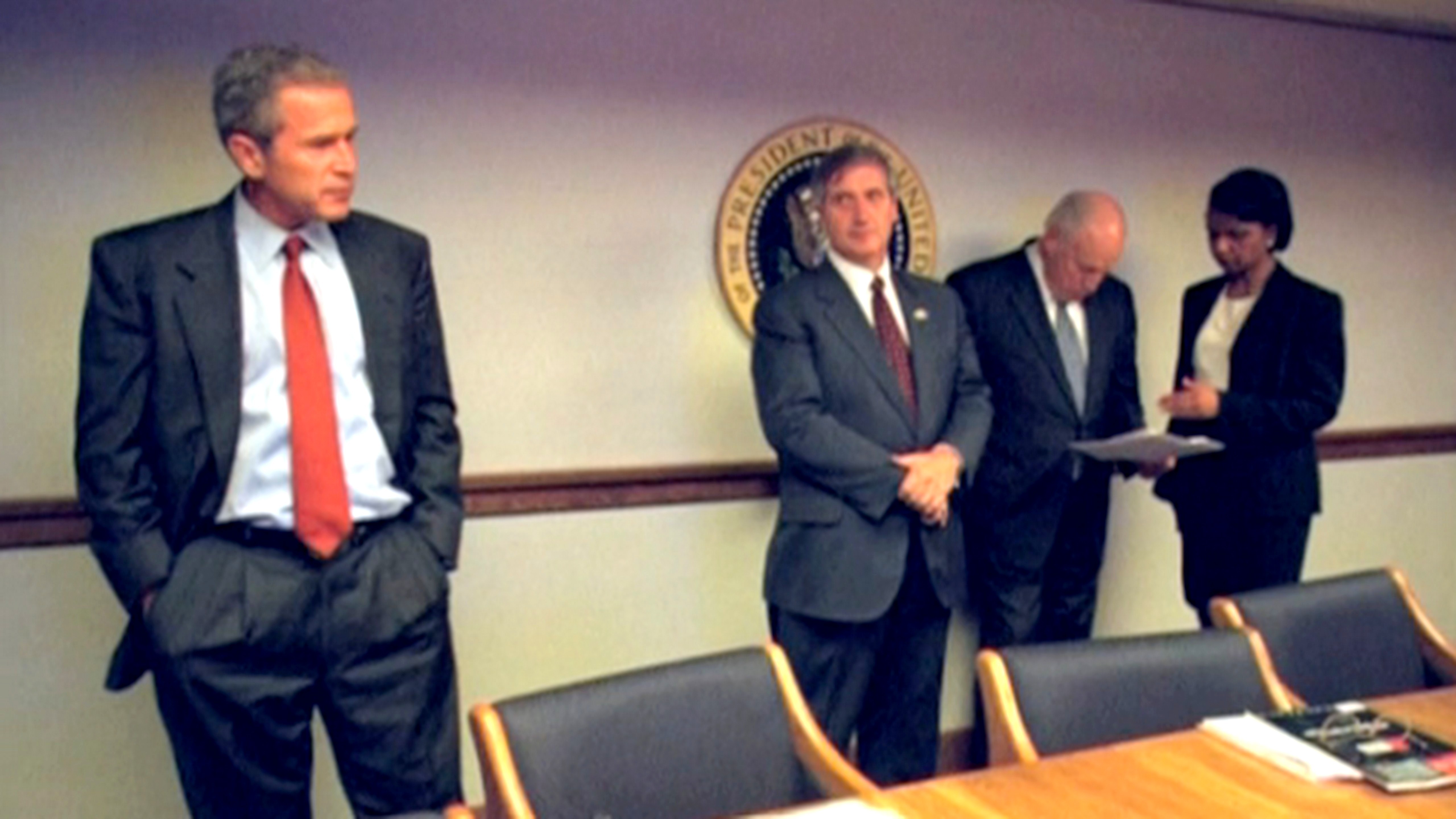 Snímky Biely dom zverejnil na žiadosť Colette Neirouz Hanna, producentky dokumentárneho programu stanice PBS. Na fotografiách je George Bush, vtedajšia bezpečnostná poradkyňa prezidenta Condoleezza Rice i minister zahraničných vecí Colin Powell.
