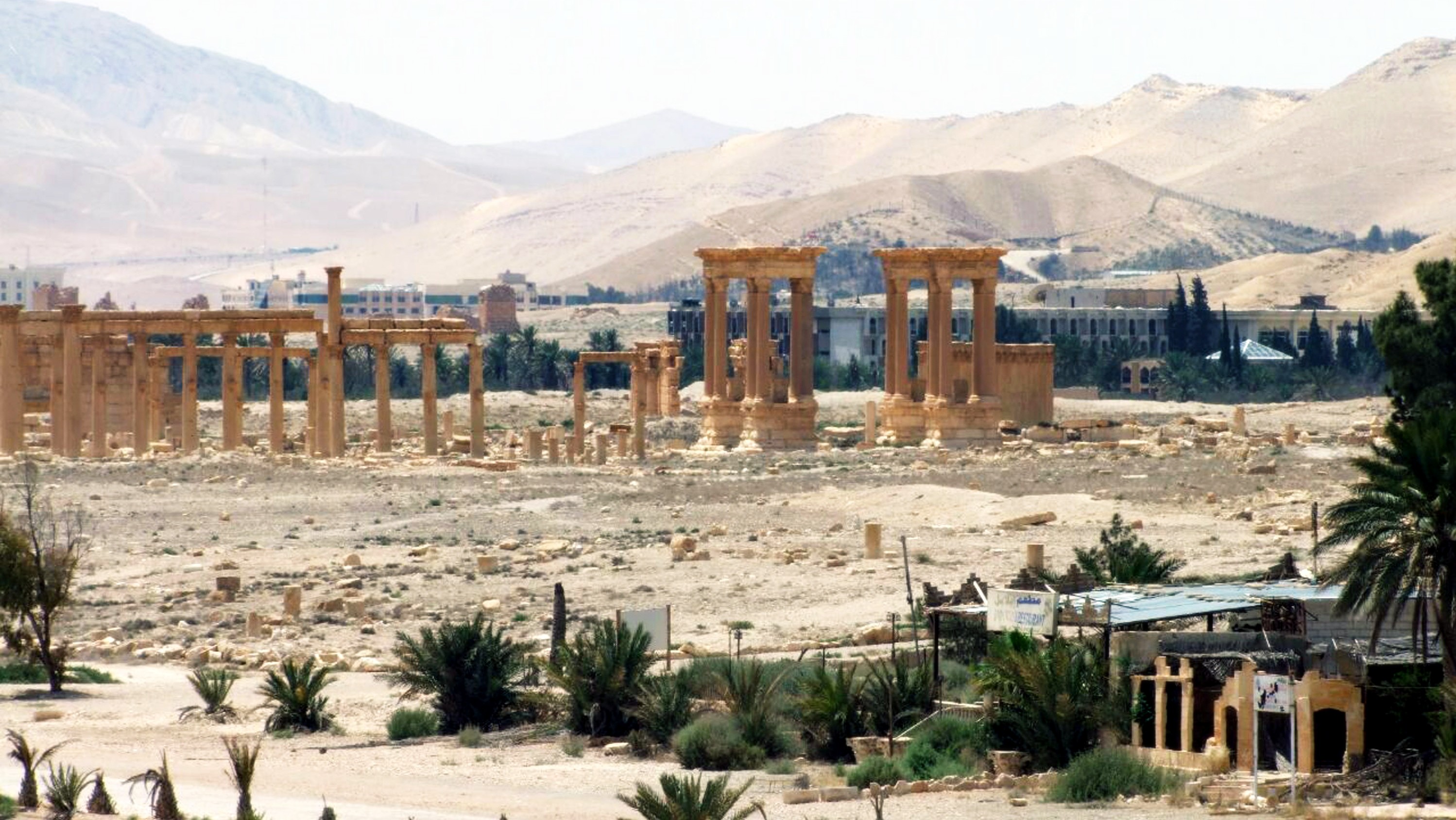 Palmýra leží na okraji púšte priliehajúcej na východe k irackej provincii Anbár, ktorá je v rukách Islamského štátu. Jej výhodnú polohu už v staroveku využívali karavány s tovarom. Stavby staré 2000 rokov vrátane pozostatkov antických chrámov, víťazného oblúku, kolonády so stovkami stĺpov a amfiteátru sa nachádzajú na juhozápade mesta.