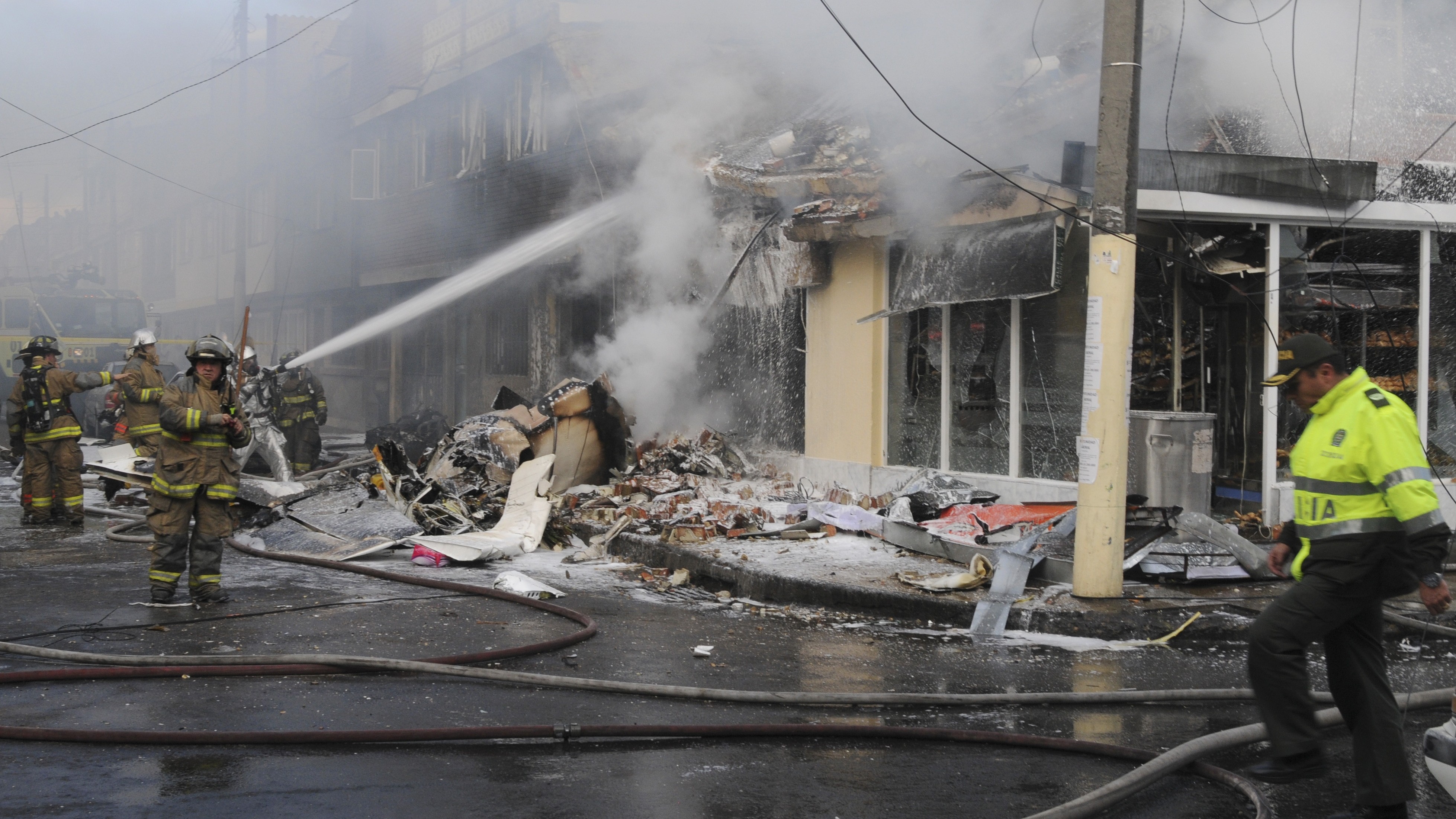 Stroj typu Beechcraft 60 zasiahol pekáreň v štvrti Engativa, ktorá začala horieť.