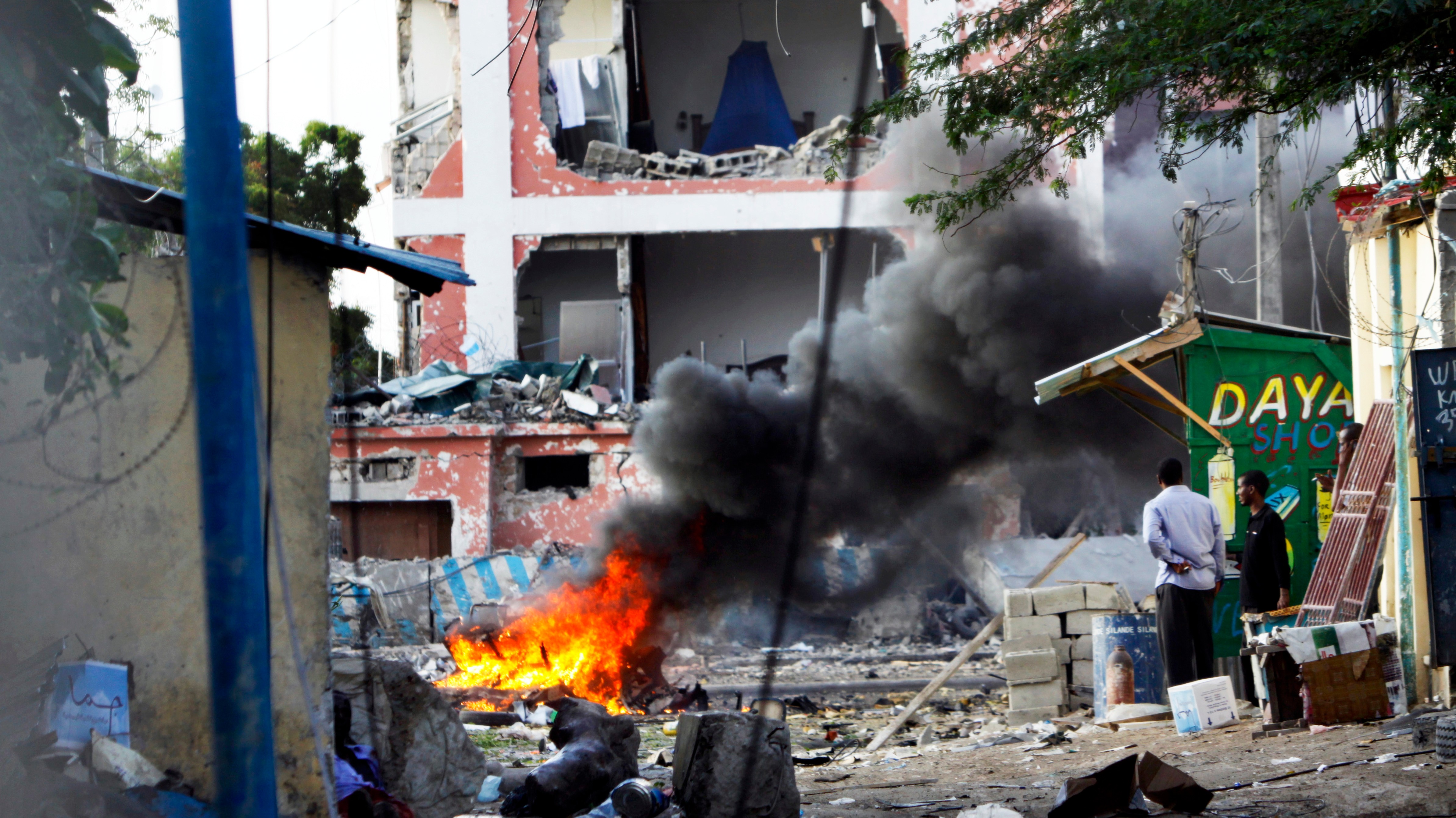Hovorca Šabábu agentúre Reuters povedal, že útok uskutočnili bojovníci z jeho organizácie. "Táto operácia stále trvá," povedal. Milície Šabáb podnikajú v Mogadiši časté útoky a páchajú aj rozsiahle teroristické akcie v susednej Keni.