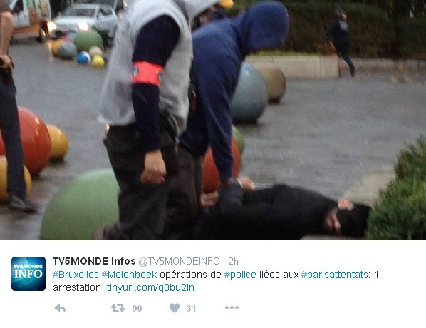 Belgická polícia spravila v bruselskej štvrti Molenbeek na západe Bruselu niekoľko razií. V tejto štvrti obývajú najmä prisťahovalci z Maroka a Turecka. Podľa polície tam viedli stopy po atetnátnikoch z Paríža.