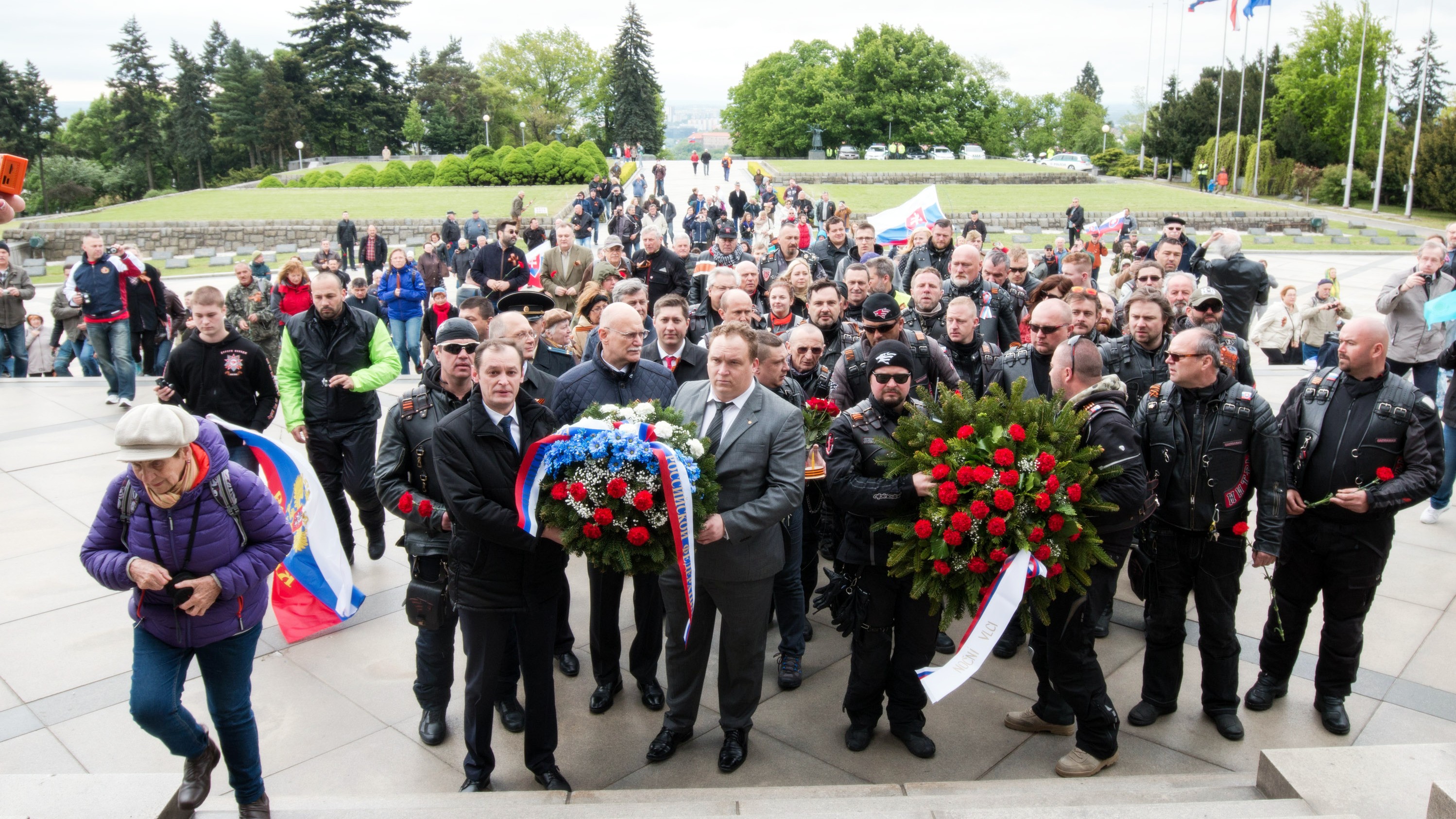 BRATISLAVA / Niekoľko desiatok motorkárov vrátane členov ruského motocyklového klubu Noční vlci, ktorí sú známi blízkym vzťahom s prezidentom Ruska Vladimirom Putinom, v stredu v Bratislave si položením vencov uctilo pamiatku vojakov, ktorí padli v druhej svetovej vojne. Na Slovensku zostanú do piatku, potom sa presunú do Berlína.