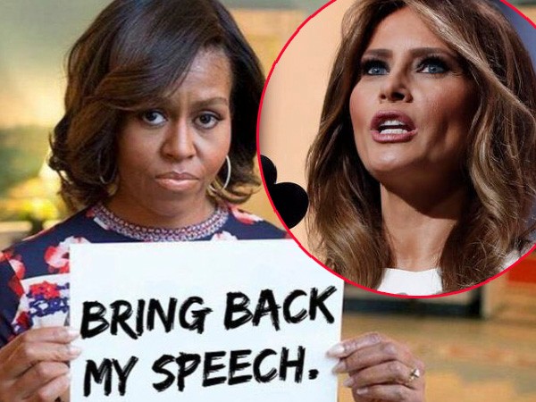 Už si robia žarty aj komici, najnovšie sa nehovorí o tom, že to bolo plagiátorstvo, ale iba vylepšená cover verzia Michelle Obamovej spred 8 rokov.