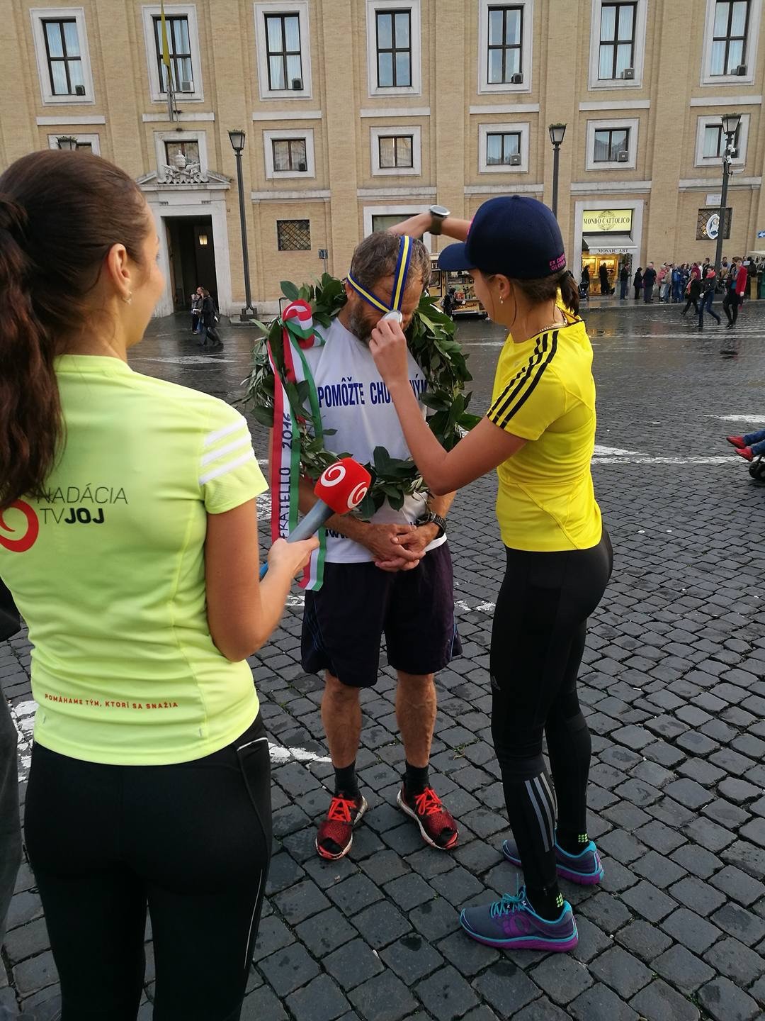 Posledných sedem kilometrov na behu do Vatikánu sprevádzal otca Gombitu aj TV JOJ Running Team. Jeho súčasťou je bežkyňa Nikola Čorbová. Tú práve pokrstil Peter Gombita. V piatok sa stretli po 26 rokoch. Keď dobehol, venovala mu jednu zo svojich najcennejších medailí.