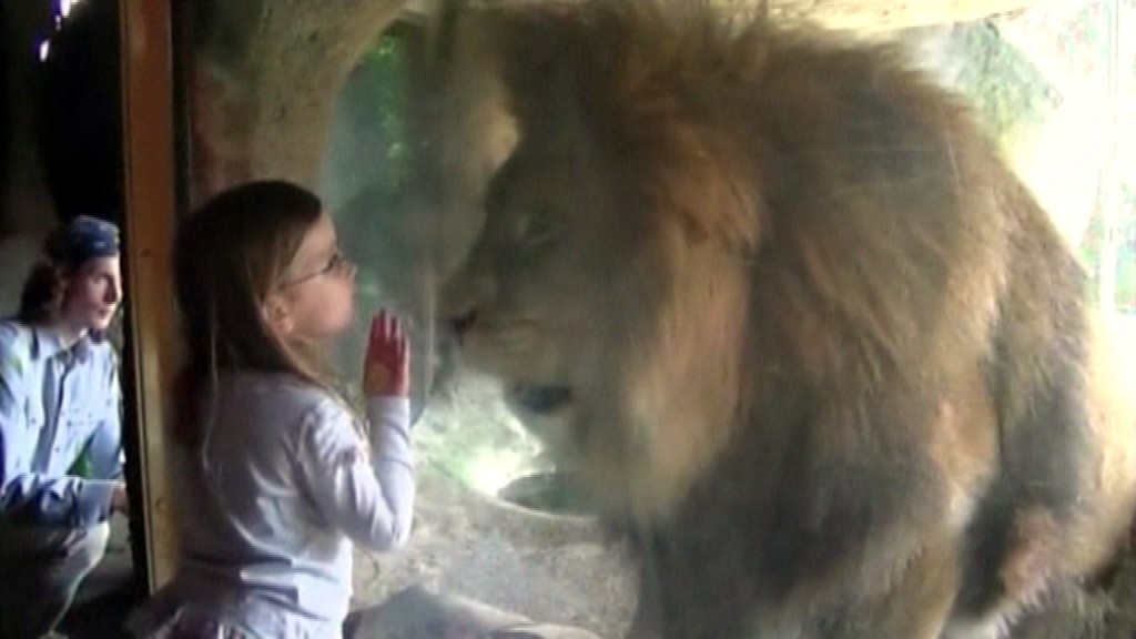 Ten spočiatku na dievčatko tiež iba pozeral, no odrazu sa vrhol na sklo mocnými pazúrmi. Bezpečnostná zábrana jeho tlaku pochopiteľne odolala, ale čo je prekvapivé, s dievčatkom zmena nálady leva ani nehla.