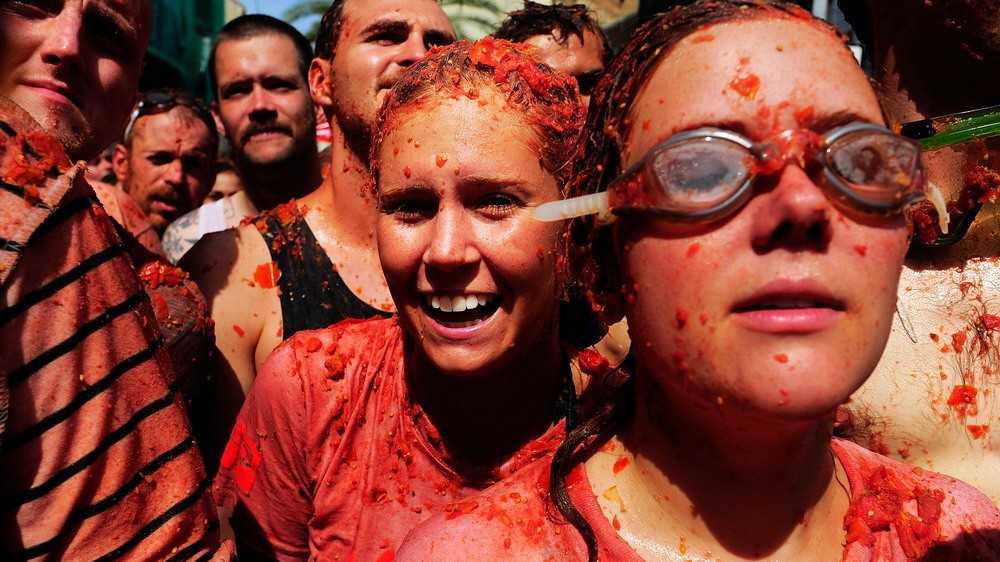 Tomatina je tu totiž súčasťou farmárskych slávností. Na paradajkovú vojnu sa pritom používajú len tie plody, ktoré nie sú konzumovateľné. Po jej skončení očisťujú spokojných vybláznených účastníkov od rajčín hasičské autá.