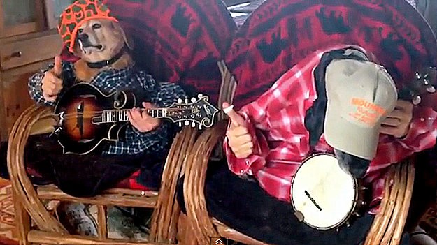 Hoci to tak na prvý pohľad vyzerá, no na nástrojoch havkáči nehrajú. Sedia za nimi ich páni. Sú však dobre maskovaní a tým pádom je efekt hrajúcich psov hudobný štýl bluegrass, dokonalý.