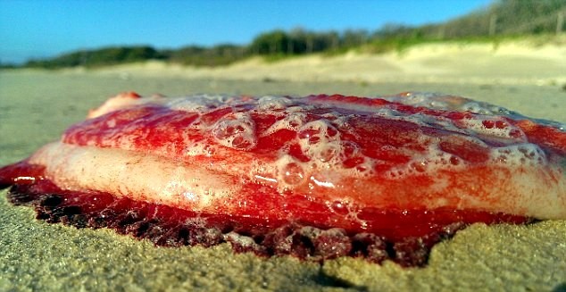 MUDJIMBA BEACH / Na austrálskej pláži Slnečného pobrežia vyplavilo tajomného vodného tvora. V piesku ho objavila žena, ktorá absolvovala rannú prechádzku na Mudjimba Beach. Červené stvorenie nemalo žiadne končatiny, oči ani ústa, zato malo rebrá, píše The Daily Mail.