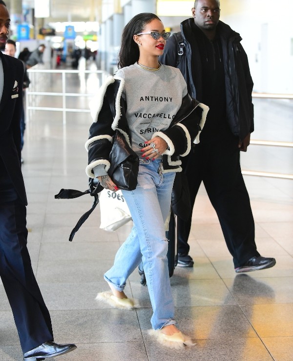Pri prvej návšteve mala na sebe šedé tepláky a tričko s obrázkom. Na nohách mala turistickú obuv, na hlave bavlnenú čiapku, slnečné okuliare a v ruke držala kávu zo Starbucks.