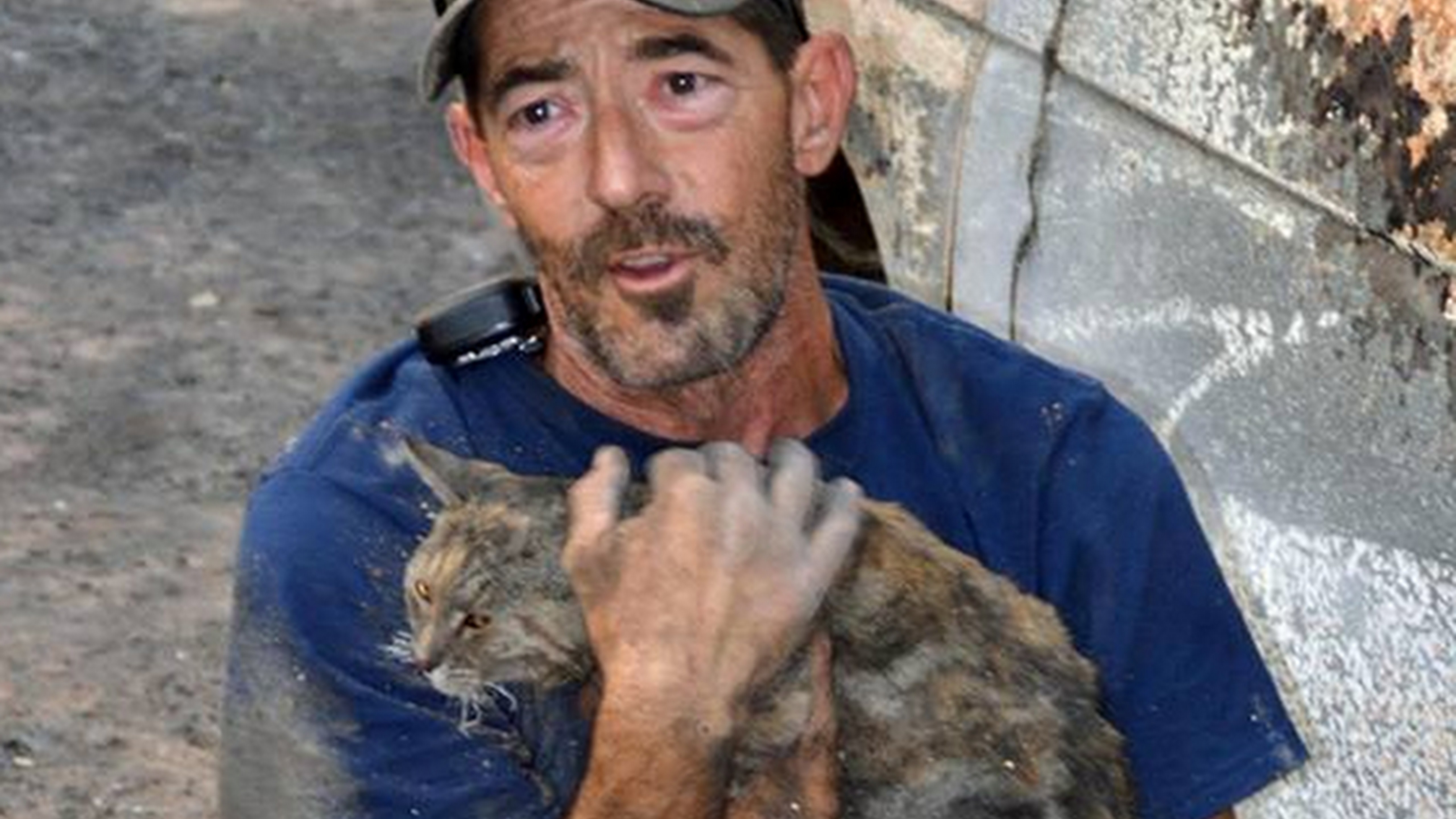 Majitelia zvieraťa, Debi a Jeff Brusatori, museli svojho domáceho miláčika opustiť. Keď pri hromadnej evakuácii opúšťali domov, mačka vyskočila z auta.