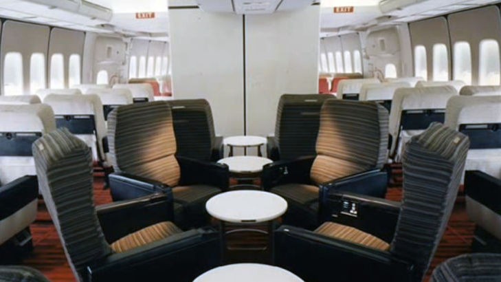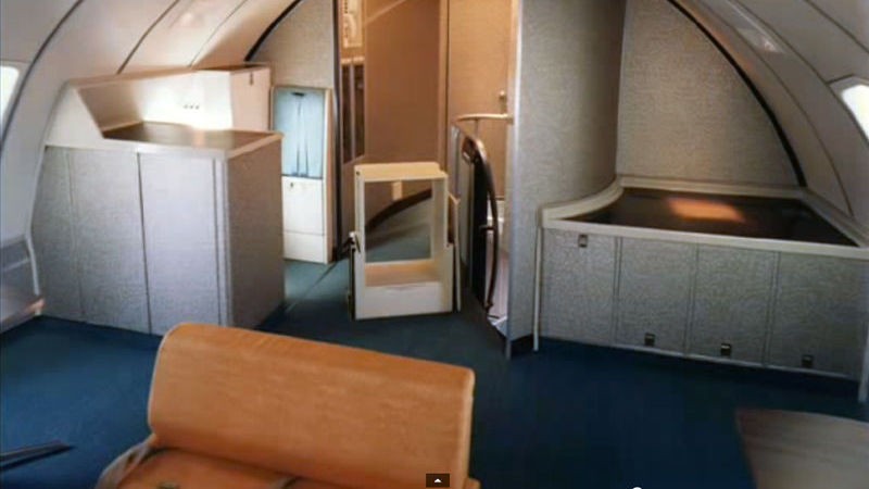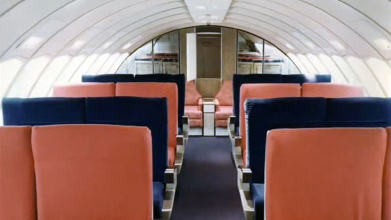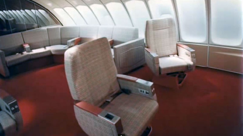 Pozrite sa na interiér legendárneho stroja Boeing 747 prezývaného Jumbo Jet. Bolo to najväčšie osobné lietadlo a prvý let sa uskutočnil v roku 1970 v rámci spoločnosti PanAm. Ponúkal mimoriadne pohodlie.