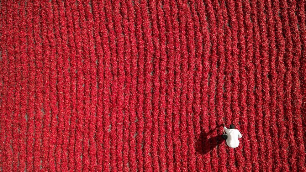 Farmár v Indii je len bielou bodkou v červenom poli čili papričiek.