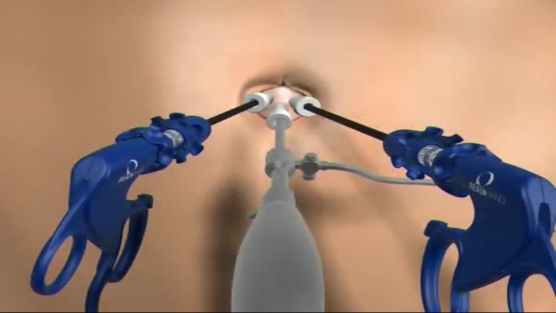 Tesne pod pupkom sa urobí centimetrový rez, do ktorého sa vloží silikónový vstup. Chirurgové oči nahradí kamera zavedená dovnútra cez jeden z otvorov.